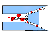 気体噴射のため、粒子同士の衝突効率が悪い。パス回数が多くなる。