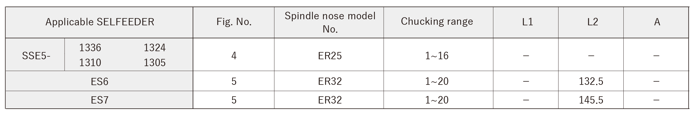 Collet Chuck Spindle Noses are applicable to ER collet of REGO-FIX AG and provided for all models of the SELFEEDER ELECTRIC series.
