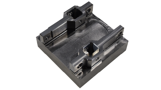 The V40a, a 5-axis indexing machining center that excels in processing speed and rigidity for ferrous materials, and a load control machining program optimized for milling, significantly reduce the machining time for multi-surface workpieces.
