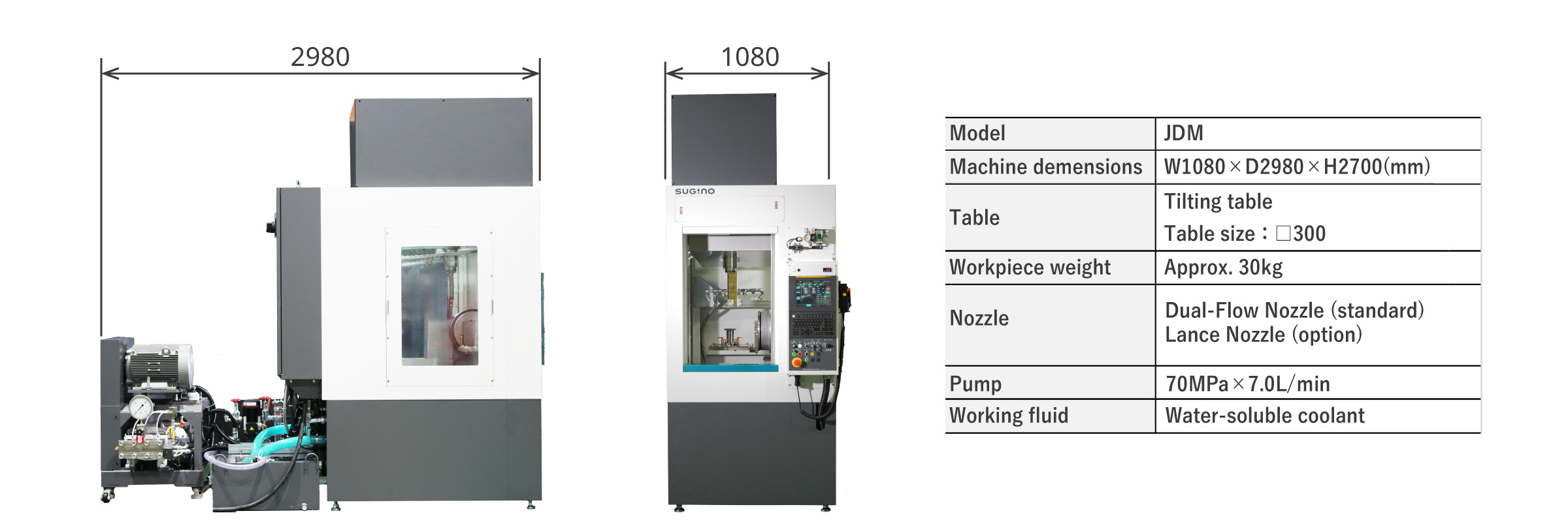 While the conventional JCC 104 HYBRID deburred at up to 50 MPa, the JDM (Jet Deburring Machine) increases pressure by 40% to a maximum of 70 MPa. The increased pressure improves burr removal efficiency, supporting automation and labor reduction of manual deburring.