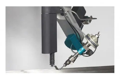 High rigidity by dual-axis gantry, low center of gravity and symmetry design, and 5-axis controlled single-point focus nozzle head with a maximum tilt angle of 50 degree realize high-speed, high-precision machining.