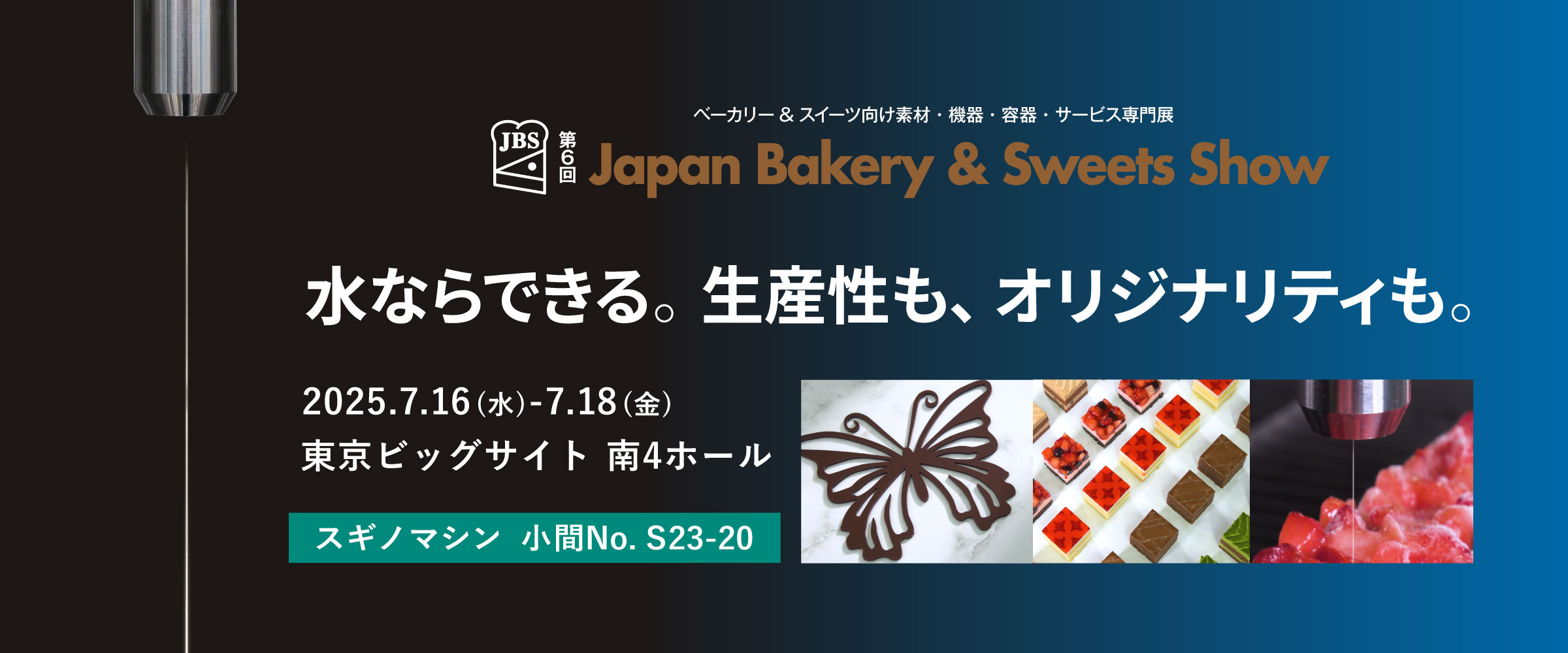スギノマシンは7/16(水)~18(金)に東京ビッグサイトで行われる、「第6回Japan Bakery & Sweets Show」に出展し、実機によるサンプル品のカット実演を行います。是非ご来場賜りますようお願い申し上げます。