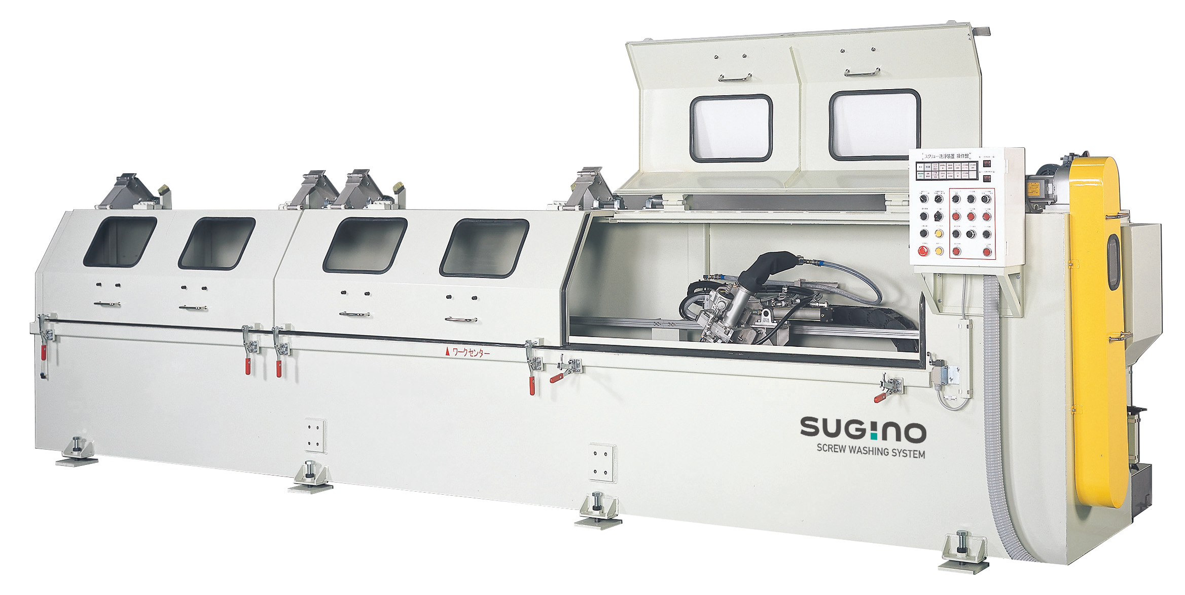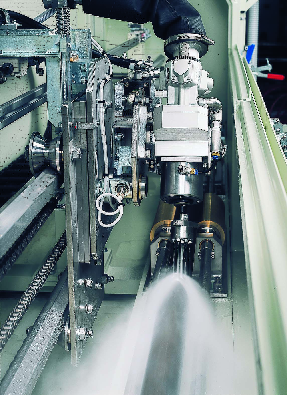 樹脂用押出し機のスクリューに付着したスケールを除去するためのウォータージェット洗浄装置です。