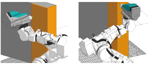 ロボットにスピンドルユニットを取り付け切削加工を行う工法です。自由な角度や姿勢からアプローチできるため、大型ワークの多面加工が省スペースで実現します。