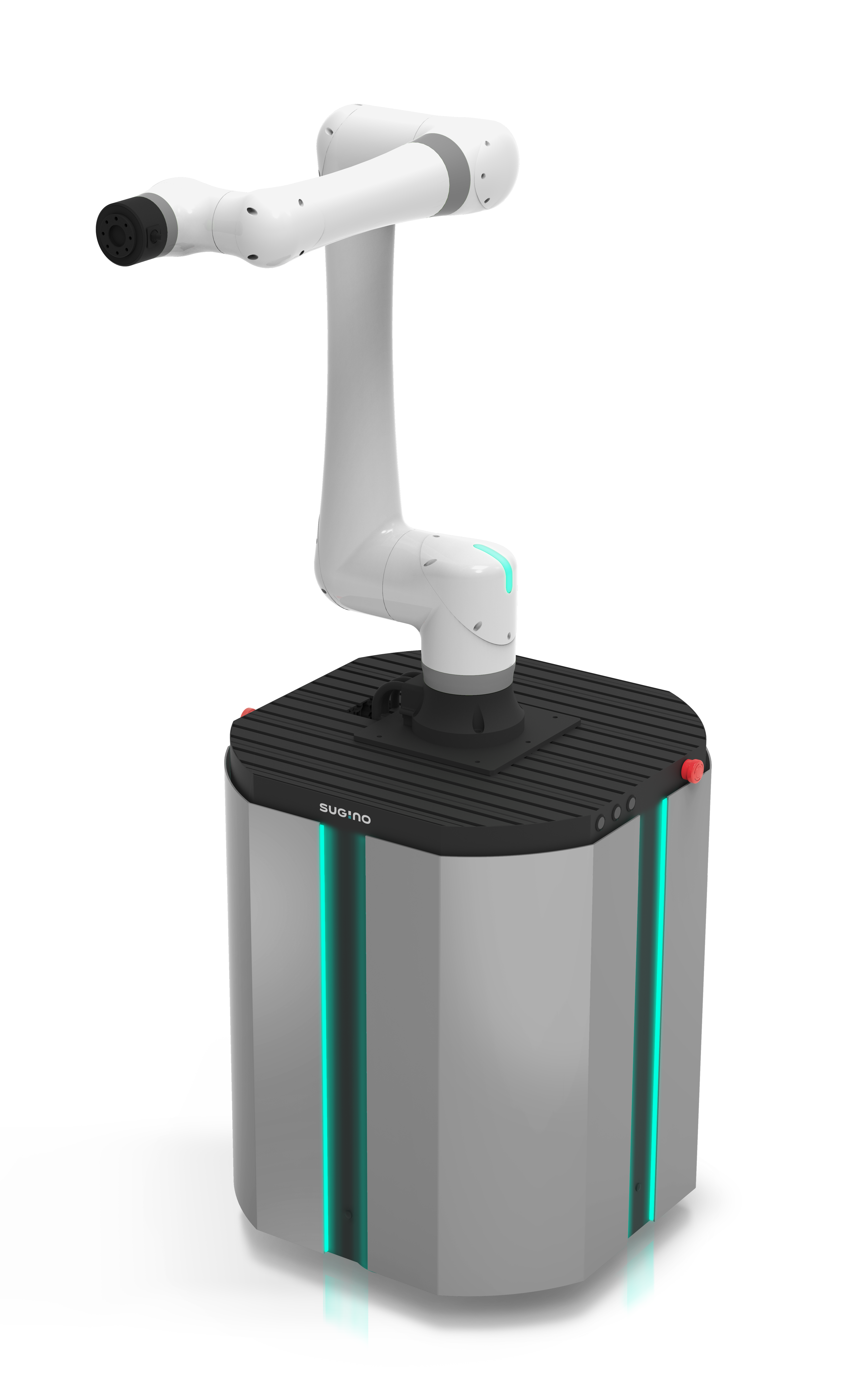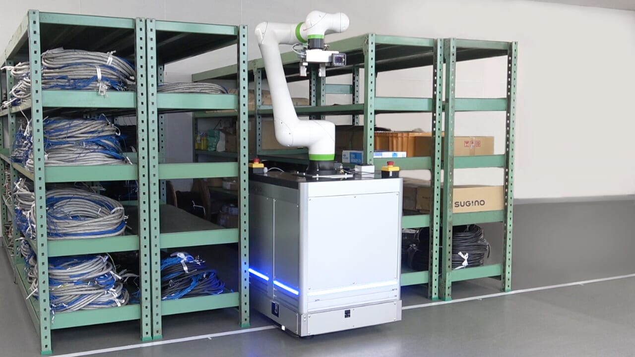 ロボットアームを架台に折りたたんで走行するタイプも完備。走行距離が長い場合に有効です。