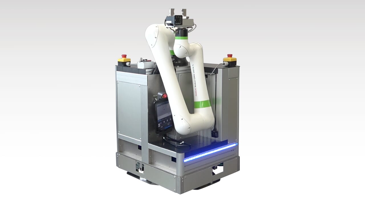 FANUC製の可搬質量20kgの協働ロボットを搭載、本体の最大可搬質量も200kgとパワフルでありながら、コンパクト設計で狭小スペースに対応可能です。