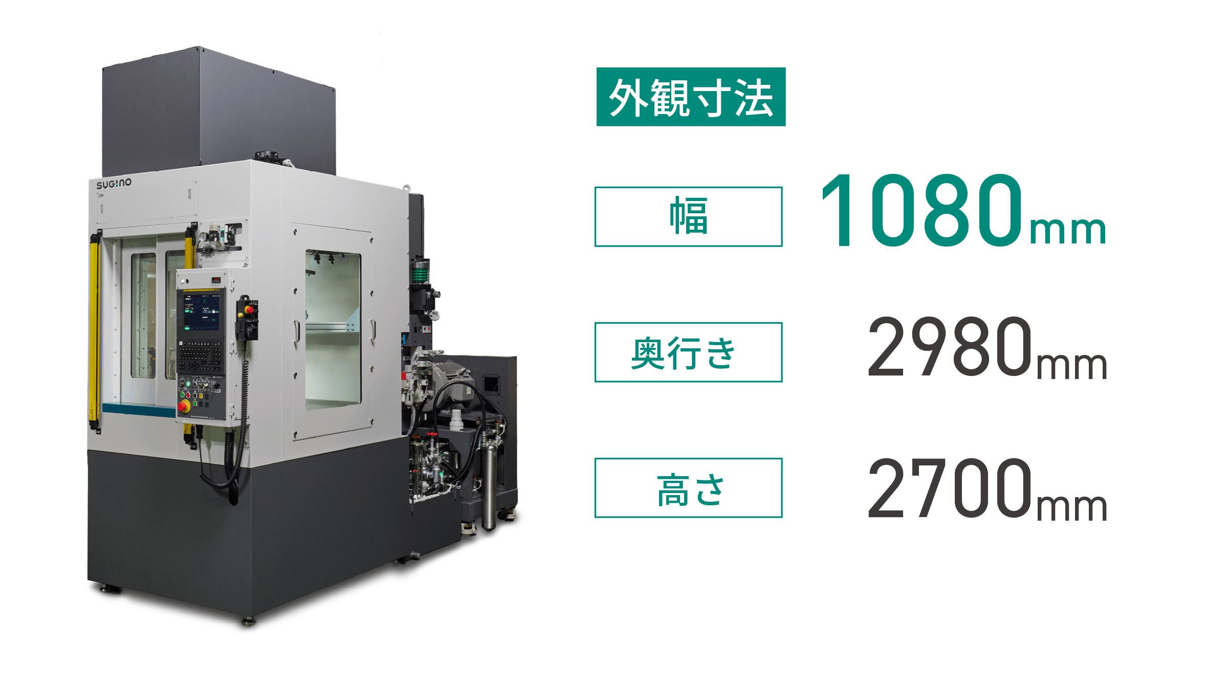 人がバリ取り作業していたスペースにそのまま設置する事を想定された、装置幅1080mmのコンパクト設計です