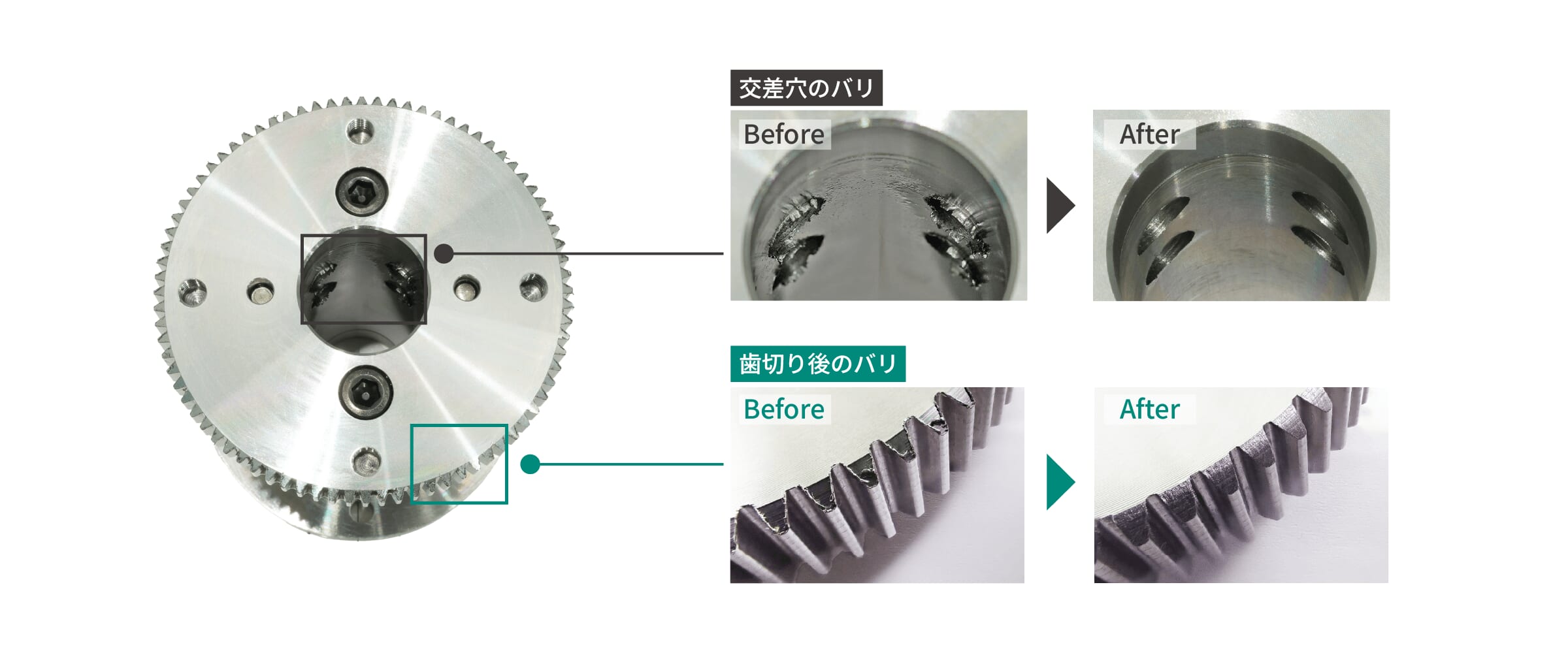 新型2系統ノズルでワーク5面のバリ取りが可能